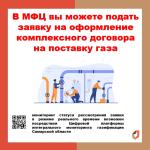 В МФЦ вы можете подать заявку на оформление комплексного договора на поставку газа.